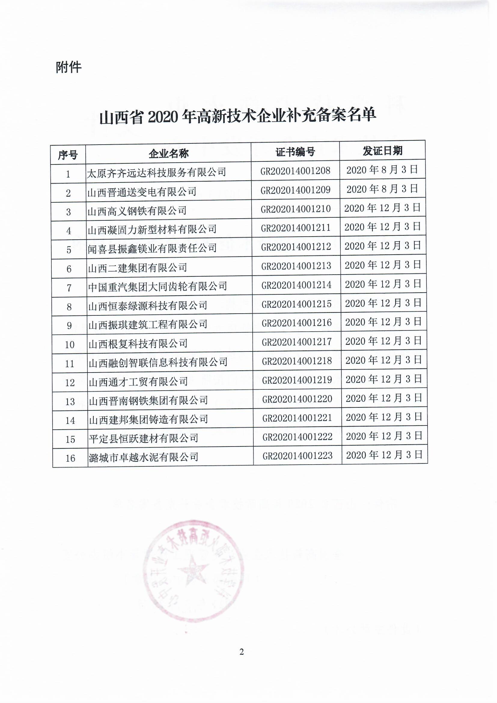 山西2024年第一批高新技術(shù)企業(yè)認(rèn)定備案公告